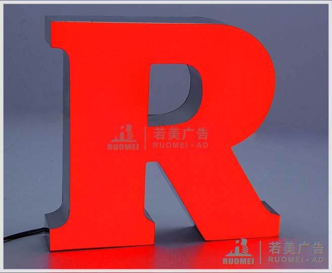樹脂發(fā)光字也是廣告標識字的一種,它是由設計切割成各種字體/特殊形狀的金屬外殼,然后在金屬模具中布置led燈,最后再用特殊工藝在形狀模具中灌入樹脂等填充材料而形成的一款勻光、亮麗、耐腐蝕的品牌廣告字。