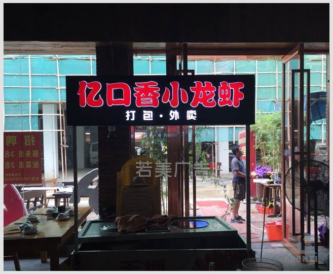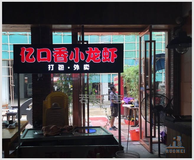 以下為若美廣告有限公司為億口香小龍蝦制作生產(chǎn)安裝過(guò)程
