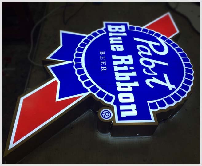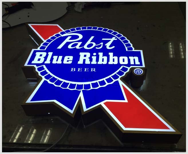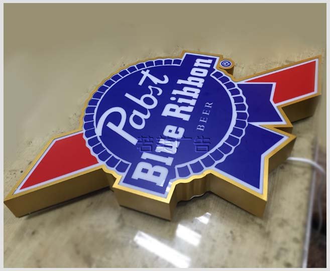 若美廣告與海爾藍帶啤酒合作之藍帶啤酒logo廣告字制作,我司與藍帶啤酒合作——制作藍帶啤酒logo平面發(fā)光字,該平面廣告字主要用在藍帶啤酒銷售部以及娛樂廣場藍帶啤酒區(qū)的廣告字招牌,超光超量的字體可以瞬間吸引消費者,讓廣告效益翻倍,您——一定不能錯過的平面廣告發(fā)光字。