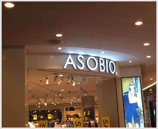 廣州商業(yè)廣場(chǎng)ASOBIO(傲鷥)服飾樹脂字制作安裝,高尚的環(huán)境就應(yīng)該用特別的字體標(biāo)志,獨(dú)特,精美,唯一!